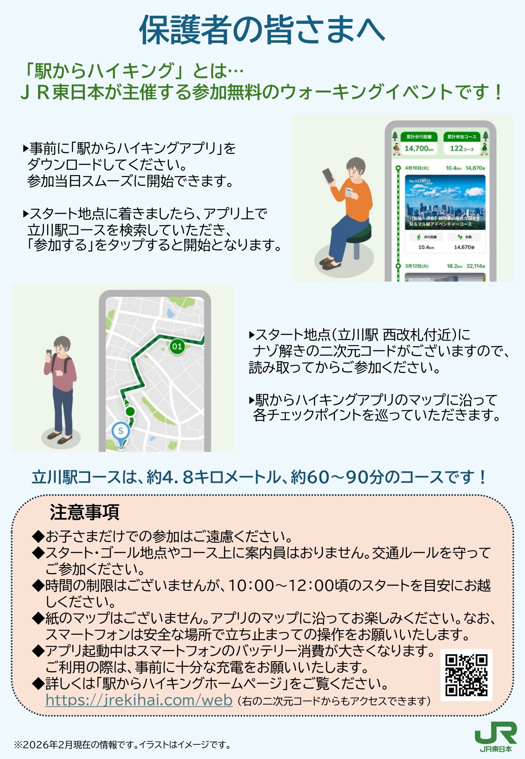・紙のマップ配布はありません。スマートフォンで「駅からハイキング」アプリをご利用ください。