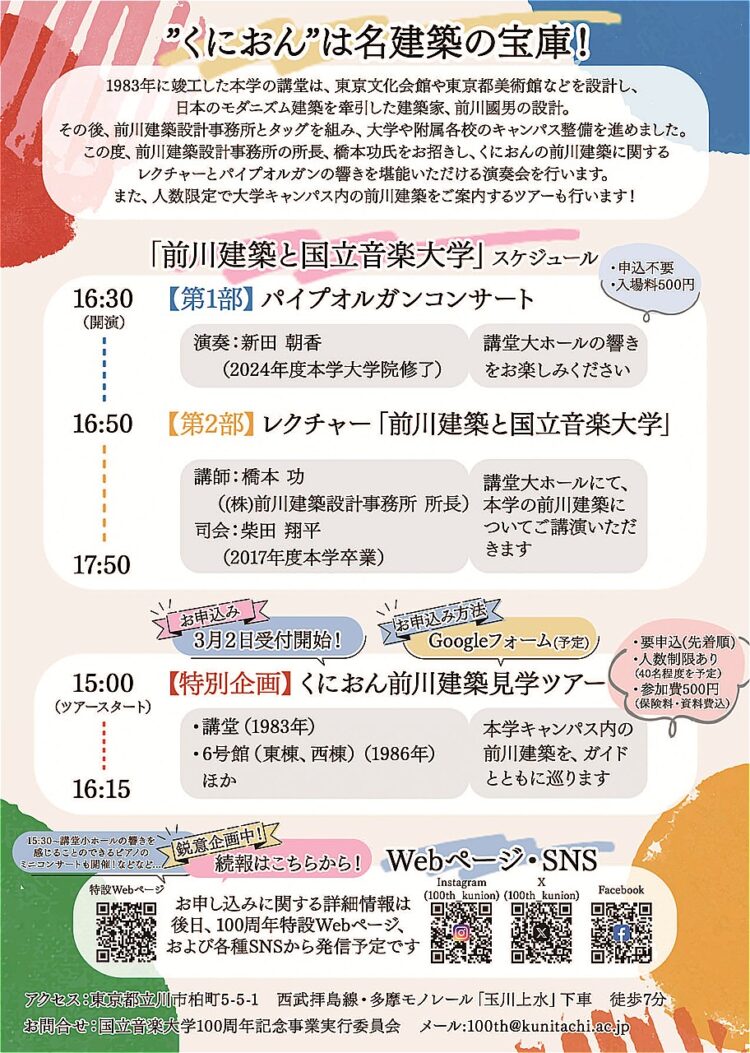 | 問い合わせ | 国立音楽大学100周年記念事業実行委員会 100th@kunitachi.ac.jp |