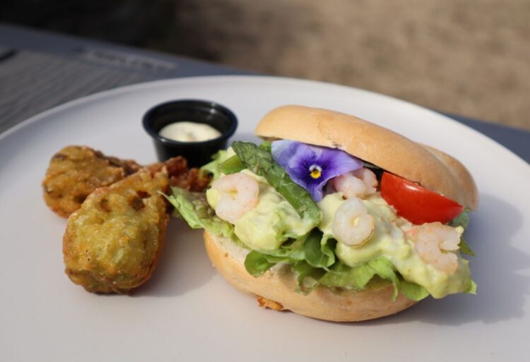 海老とアボカドサラダの春野菜ベーグルサンド(900円)