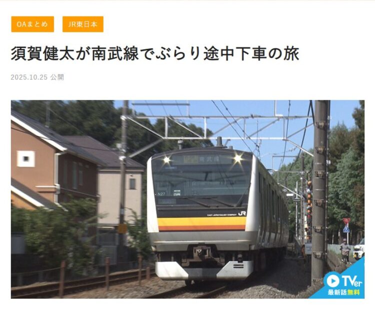 2025年10月25日放送の「ぶらり途中下車の旅」の中で立川の街並み、昭和記念公園やTiSTOREが紹介されました